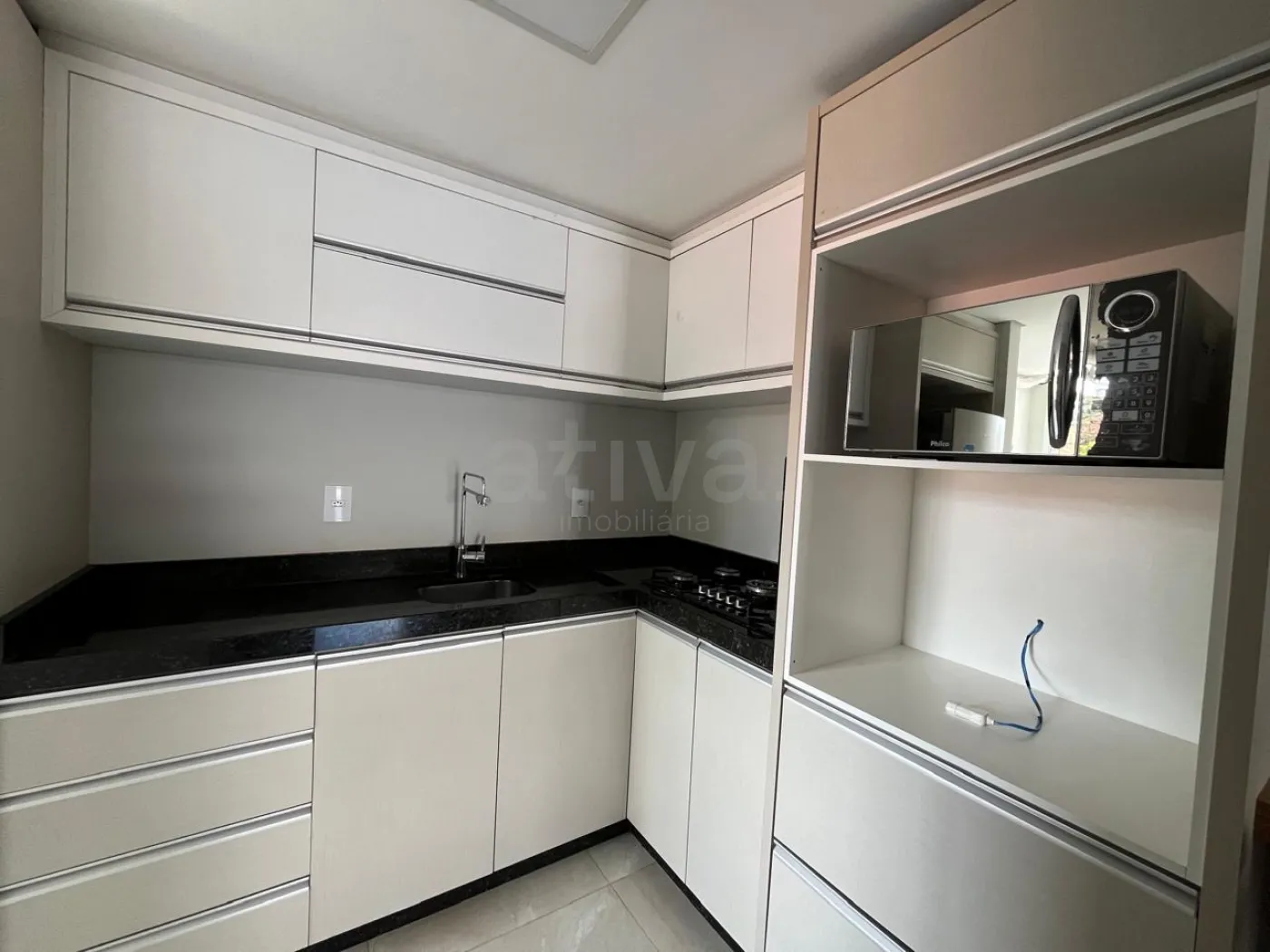 - cozinha (com móveis planejados, cooktop, geladeira, micro-ondas, forno elétrico),