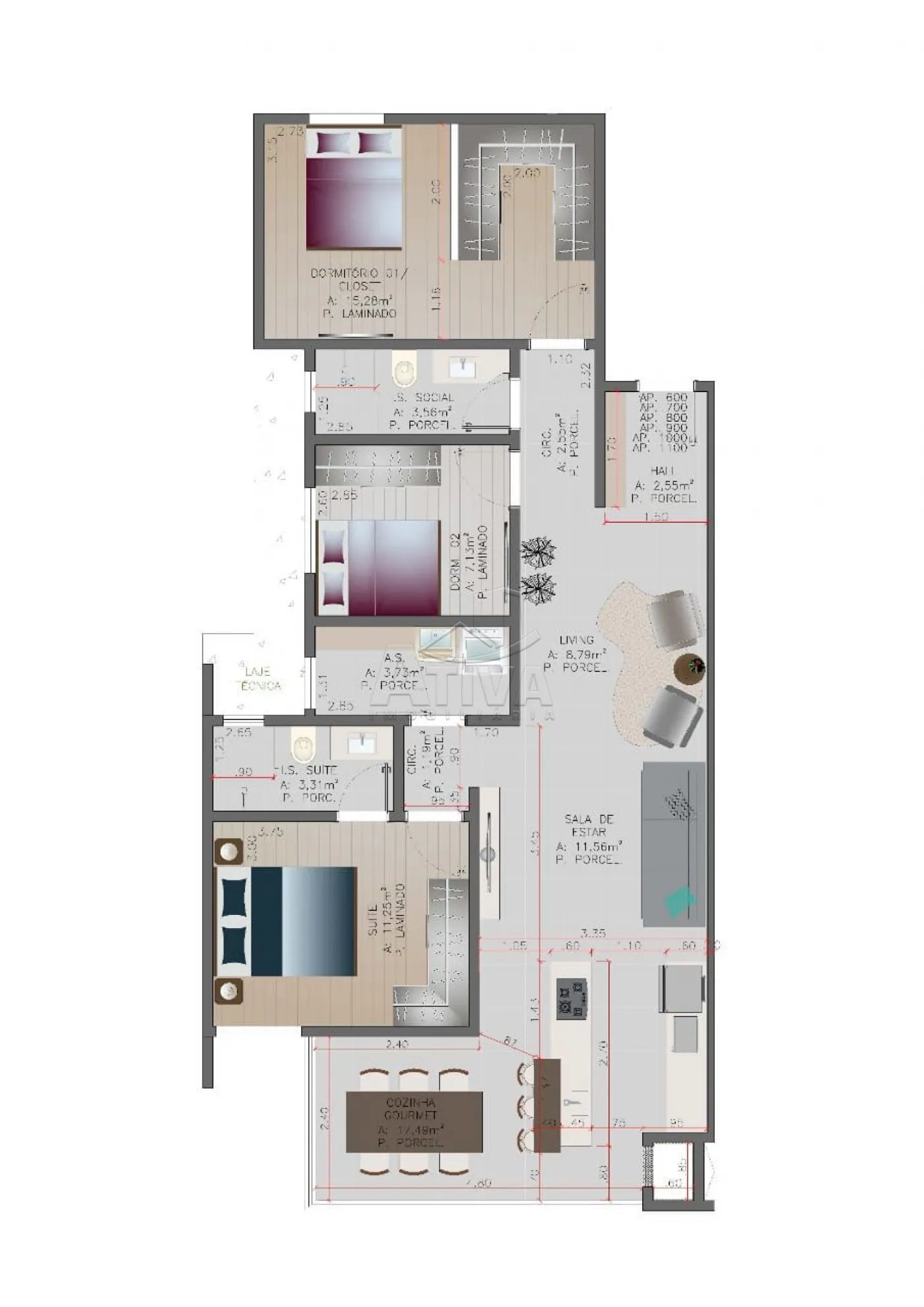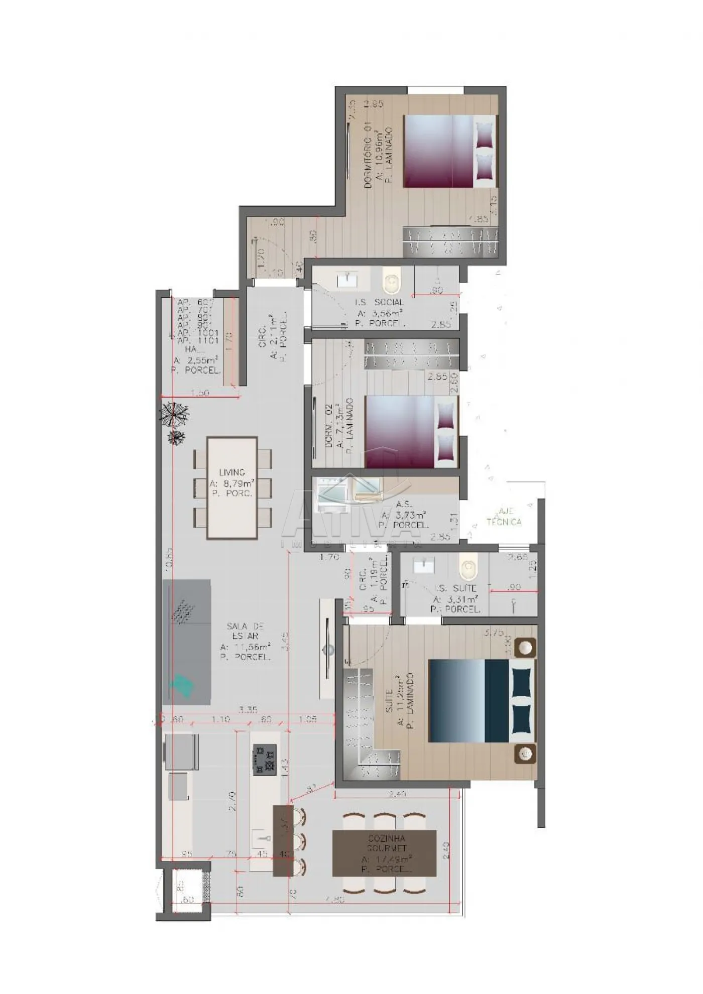 Área privativa 140,90m²