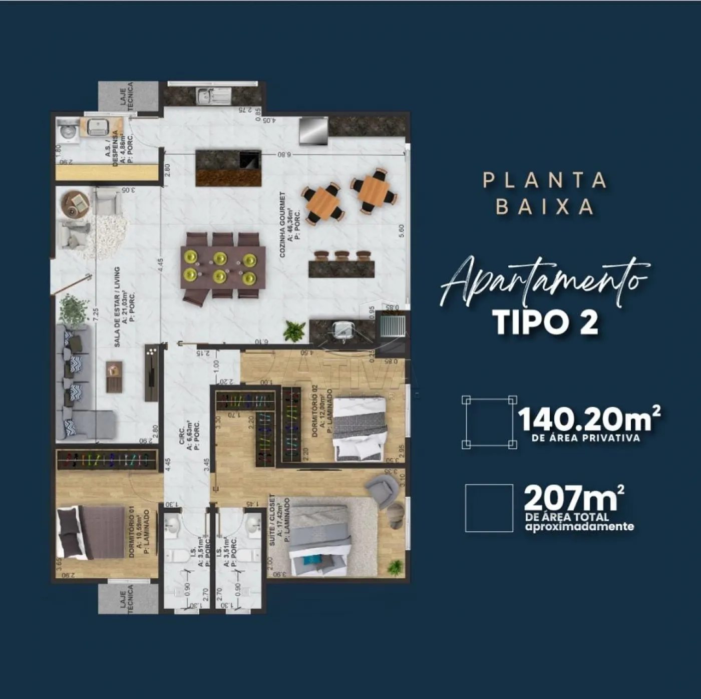 Área Privativa 140,20m²