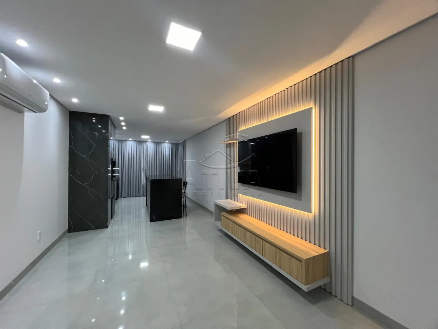 - Sala de Estar com painel de televisão e televisão