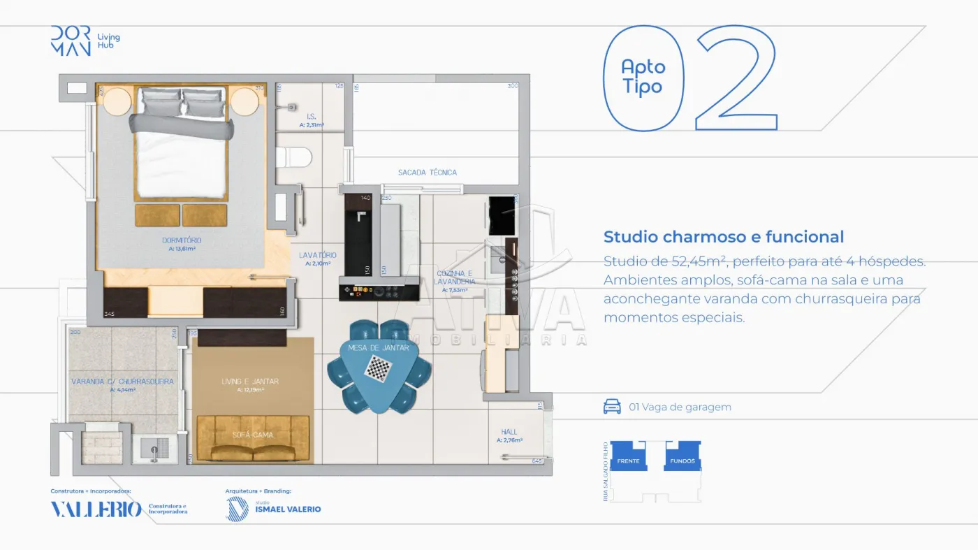 Área privativa 52,45m²