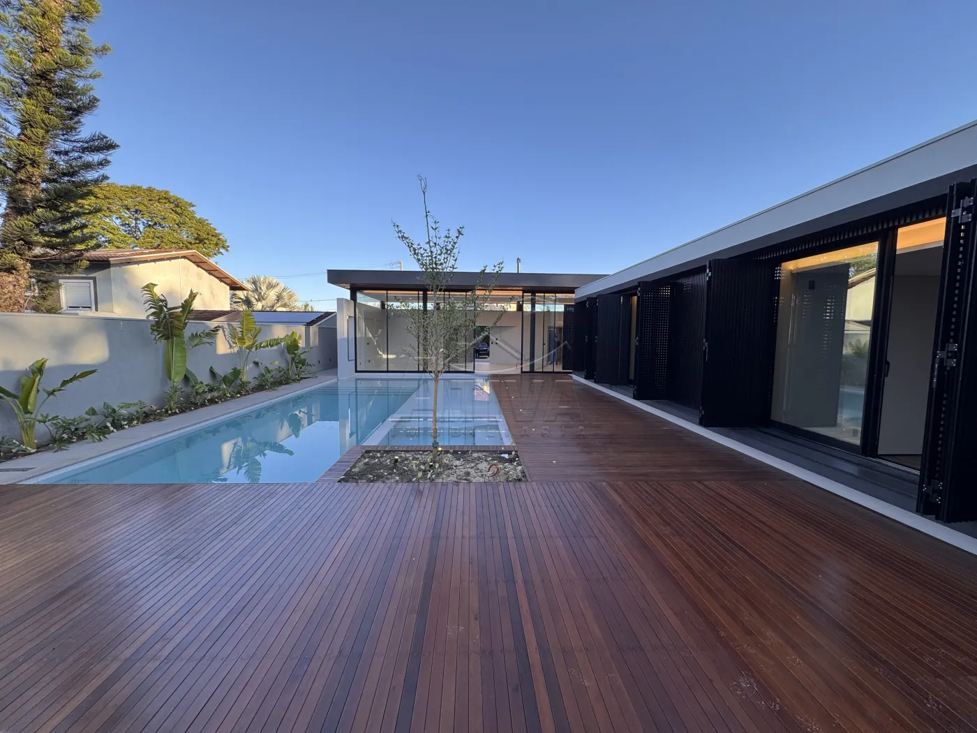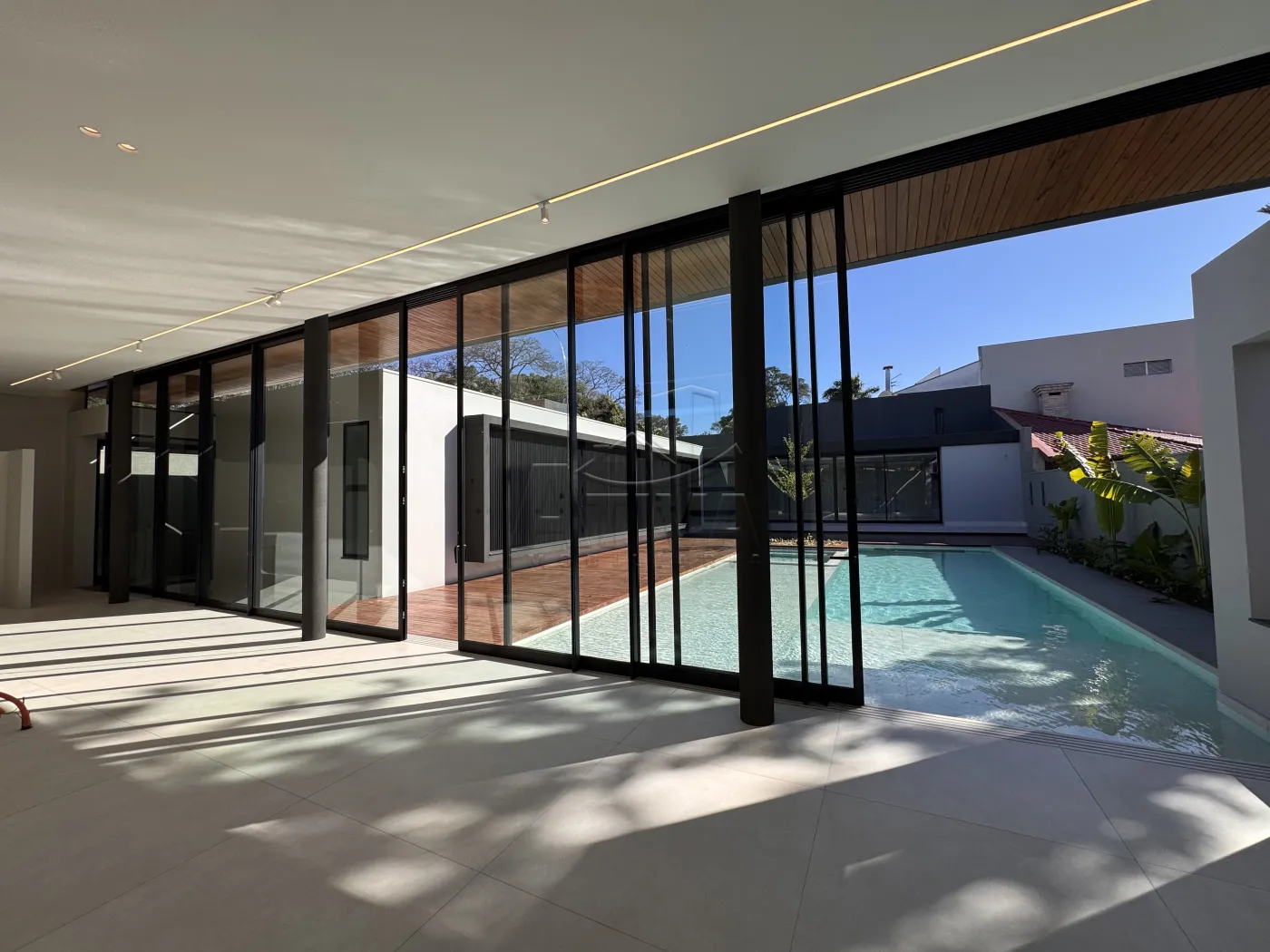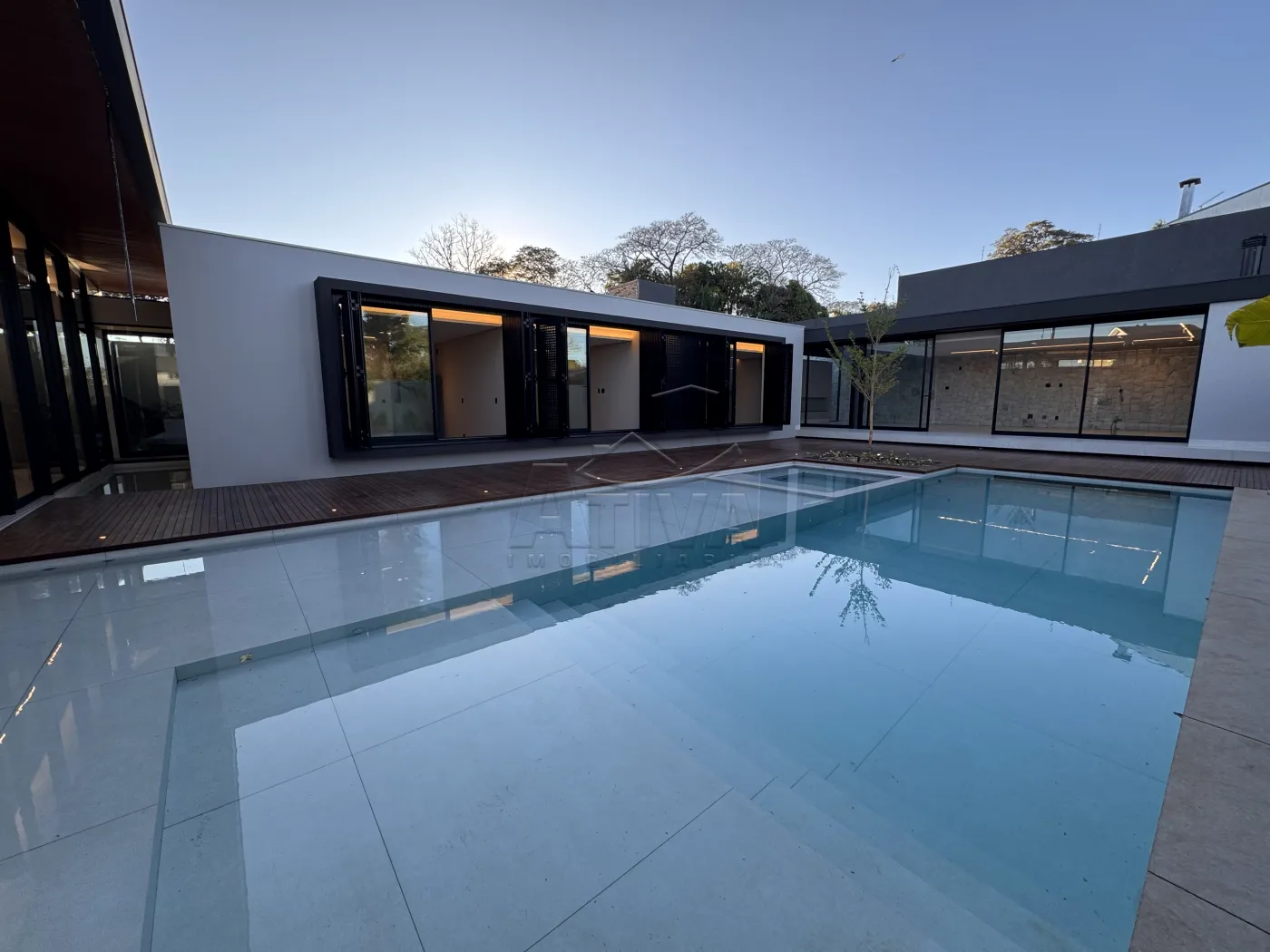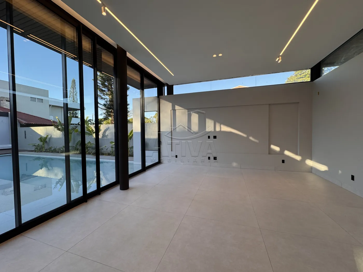 - Piscina com deck molhado para cadeiras de sol, toda porcelanato . Visor de vidro com vista para a Adega ,Spa com hidromassagem e chess esculpida.