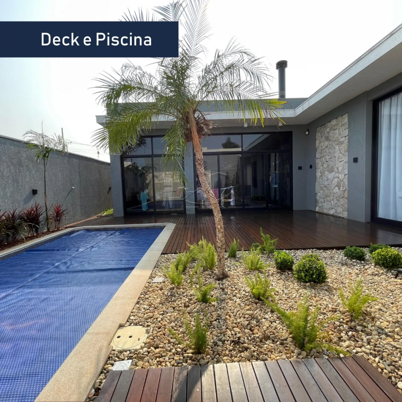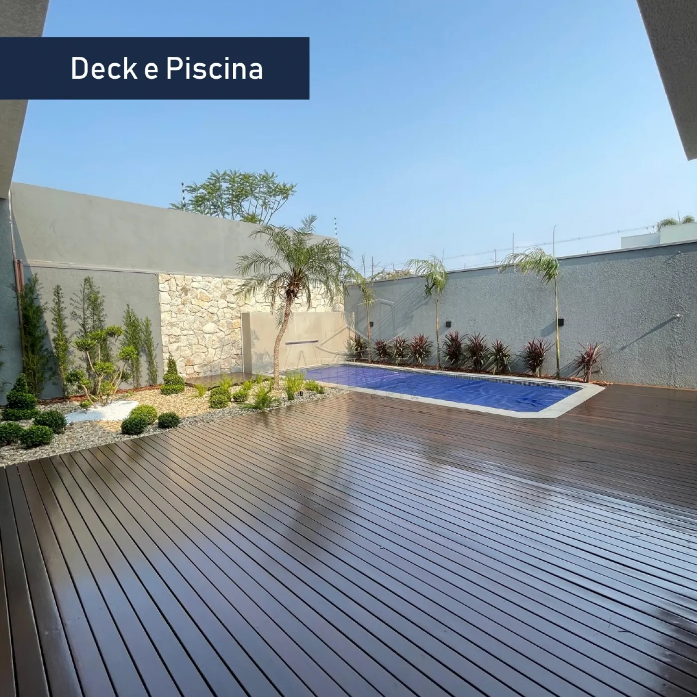 - Deck em madeira Itaúba - Acesso à piscina completa e área preparada para SPA, com acabamento em pedras naturais moledo.