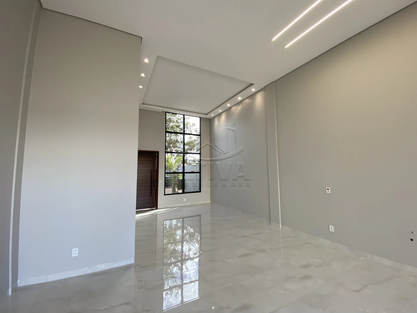 - Sala de estar com pé-direito duplo, proporcionando um ambiente amplo e luminoso.
