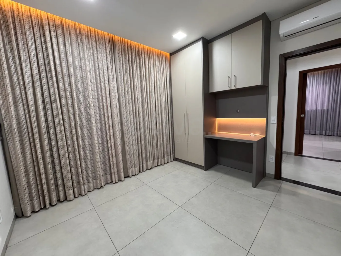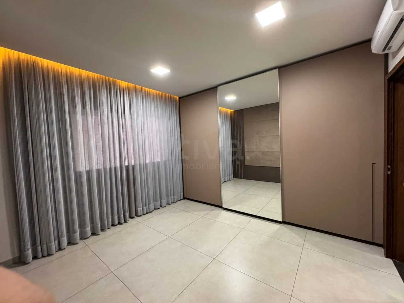 - Sala com pé direito alto e cortina