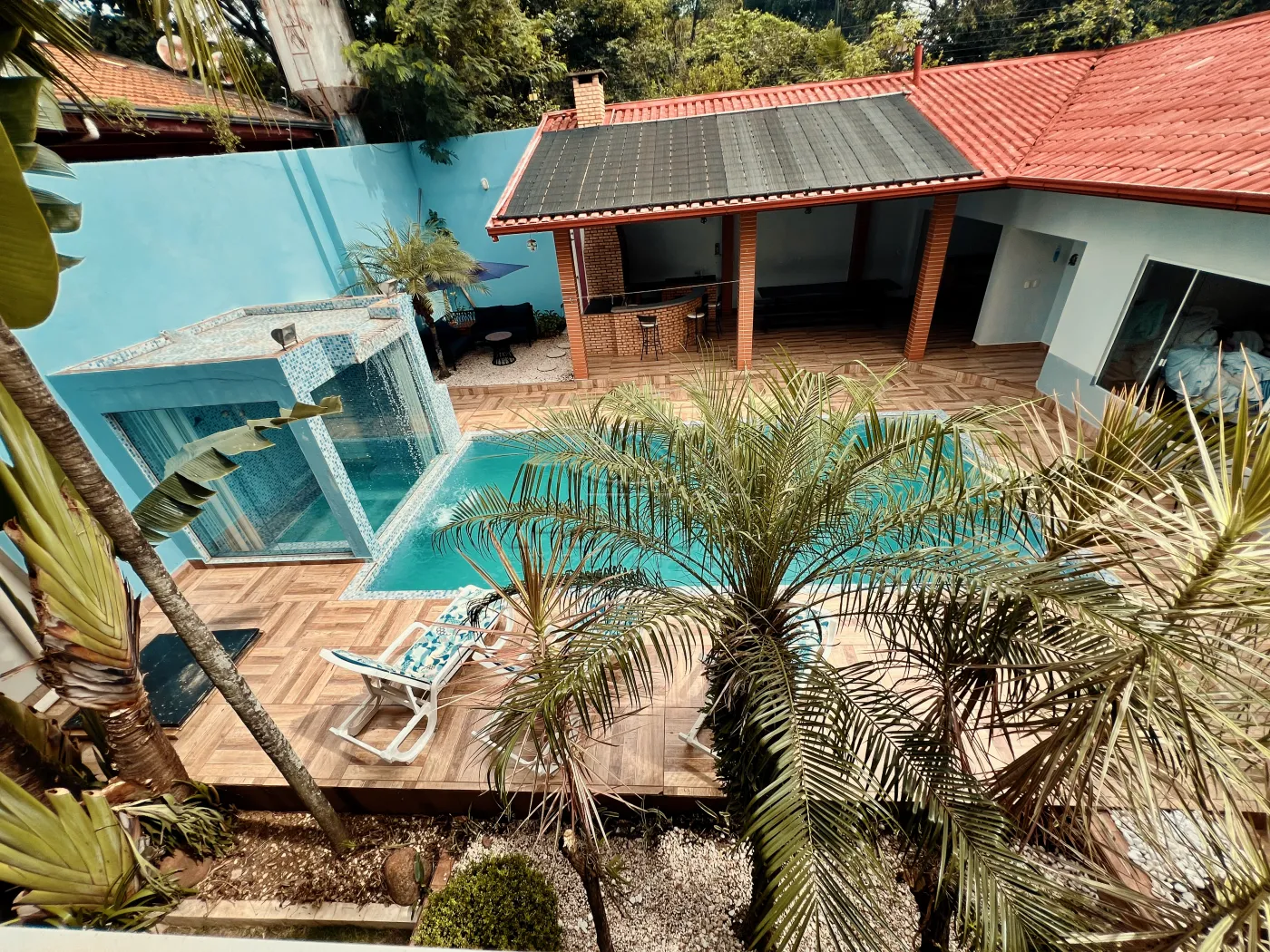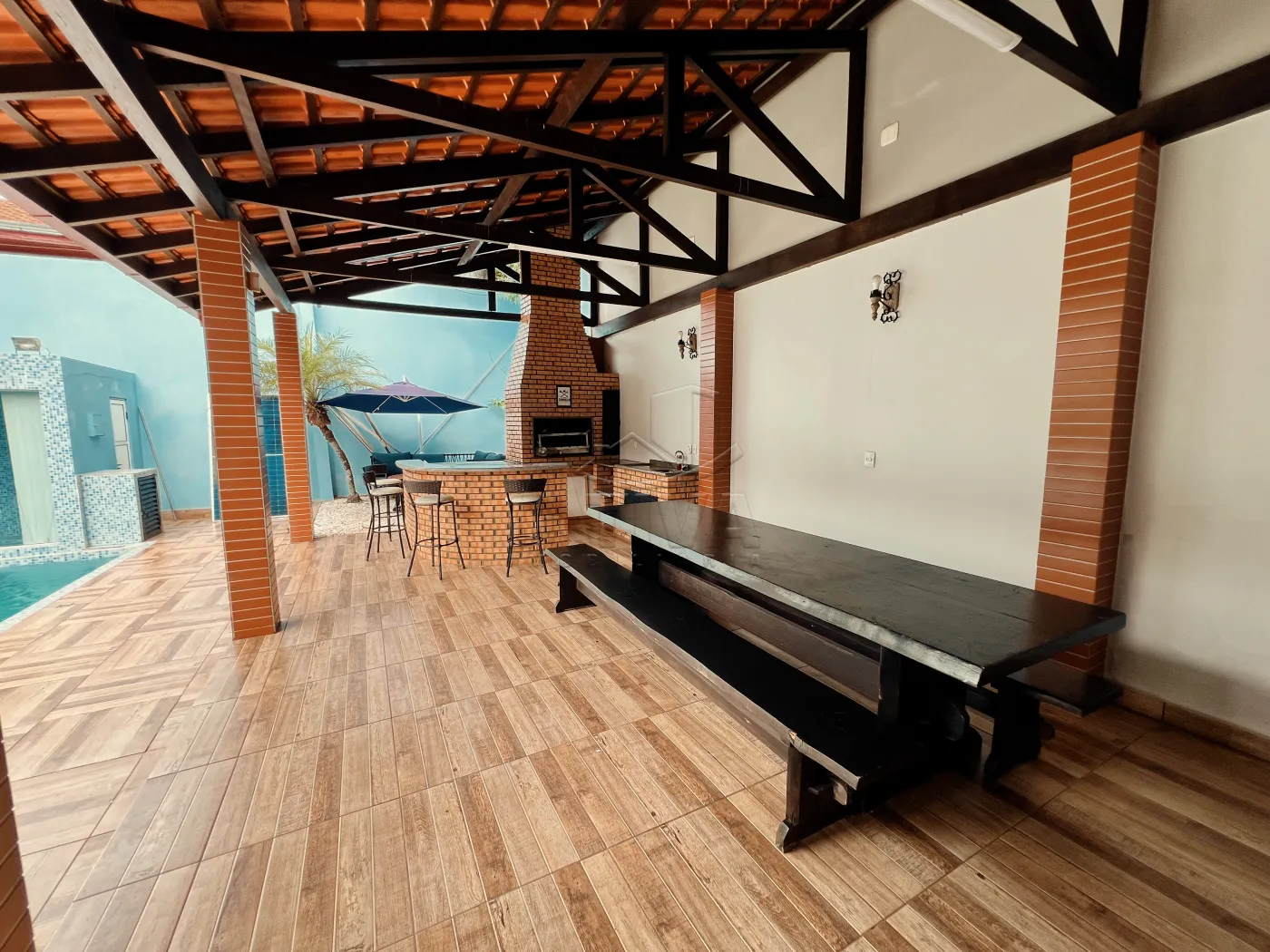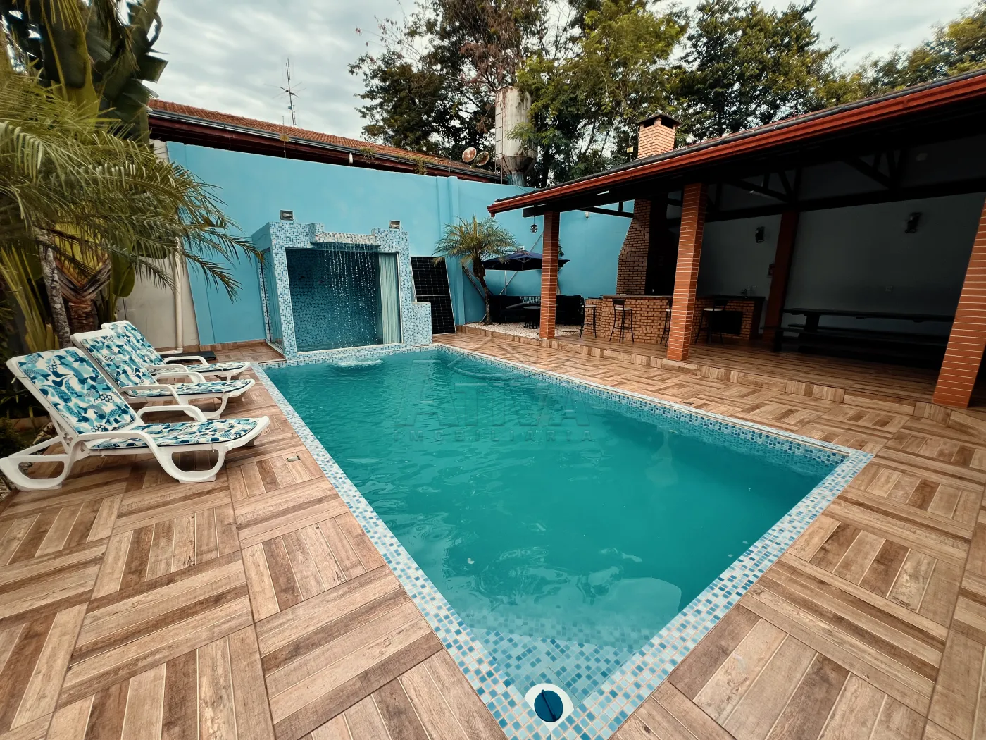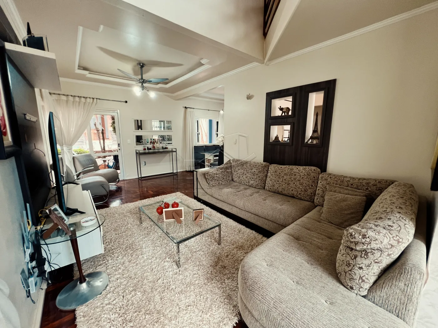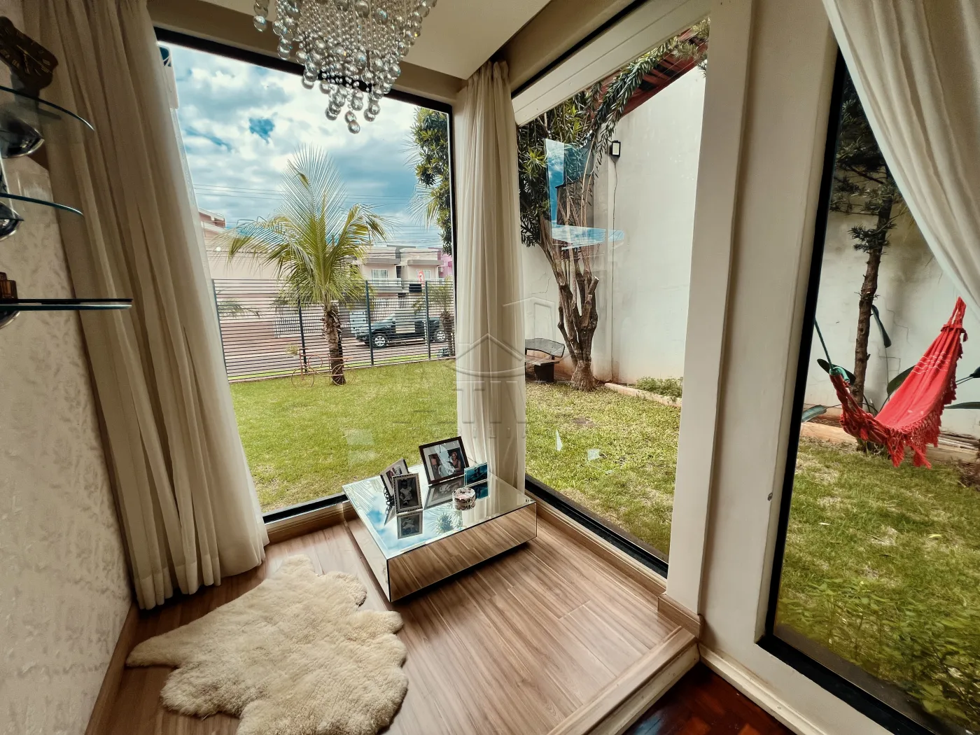 Sobrado com 3 quartos, 1 suíte, sala de estar, sala de jantar, cozinha planejada, 4 WC (suíte+serviço+social+lavabo), ar condicionado, piscina aquecida com cascata, sauna, área de festas com churrasqueira e 3 vagas de garagem. Possui aberturas em madeira, piso porcelanato e madeira, teto de laje e gesso rebaixado, aquecimento à gás, sistema de alarme, videofone, portão eletrônico.
