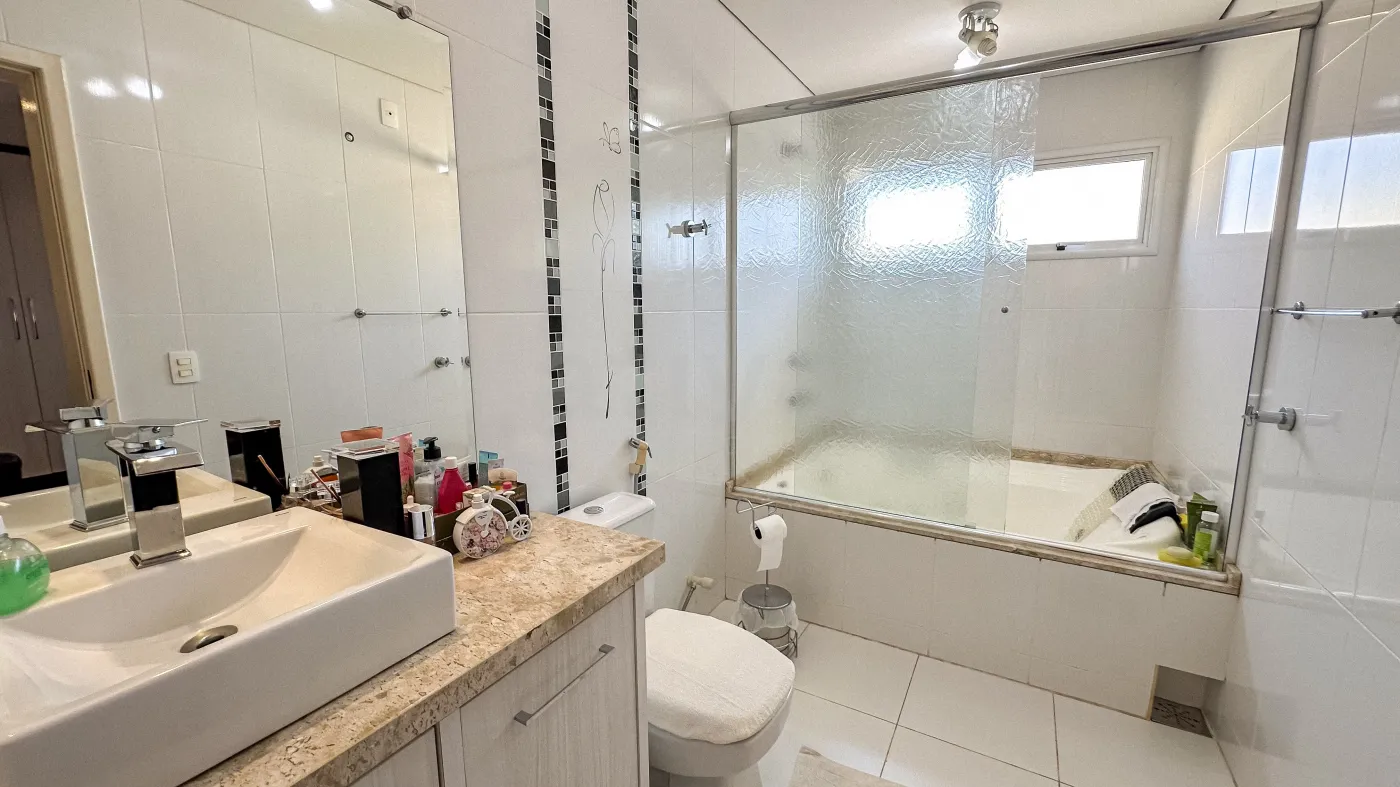- 01 suíte no piso inferior com ar condicionado e banheira de hidromassagem.