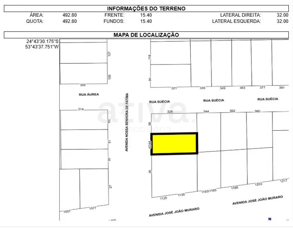 Frente 15,40m² - Lateral: 32,00m²